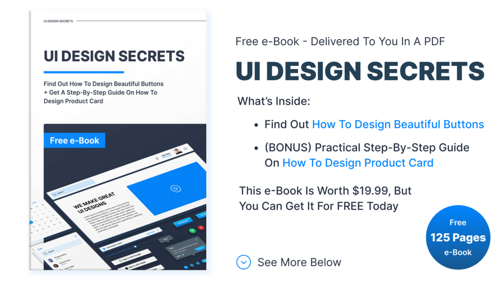 The UI design secrets e-book's purpose is to teach you how to design buttons and product cards and give you insight into what you can expect from UI Design Secrets masterclass.